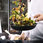 A buffet breakfast is available each morning at the Campanile. For dinner you can have vegetarian dishes at the French restaurant from 7:00 pm to 9:30 pm. It is open for dinner 7:00 PM to 9:30 PM.